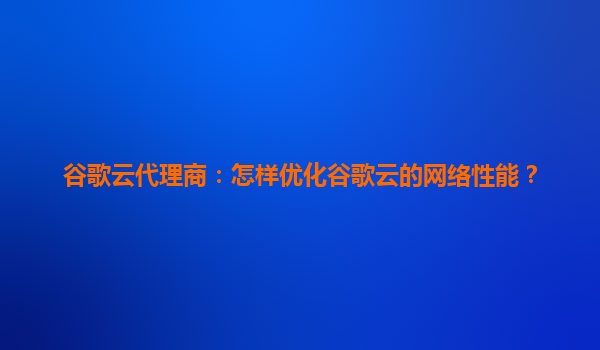 优化谷歌云网络性能的关键策略