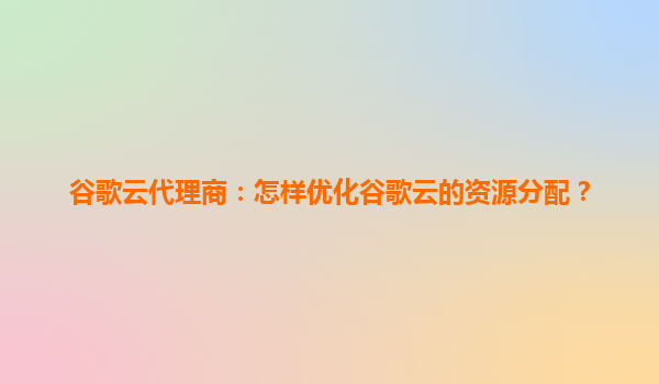 谷歌云代理商:怎样优化谷歌云的资源分配?