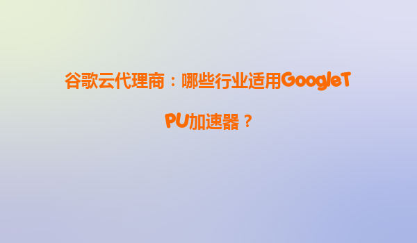 谷歌云代理商:哪些行业适用Google TPU加速器?