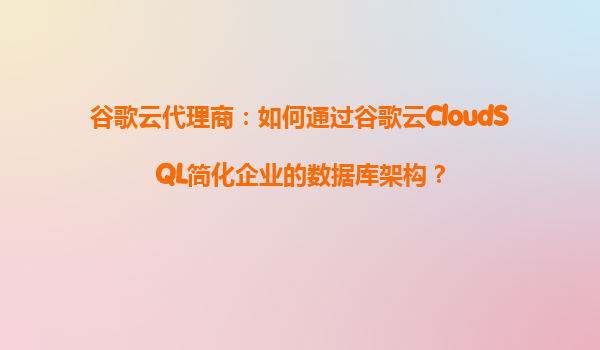 谷歌云代理商:如何通过谷歌云CloudSQL简化企业的数据库架构?