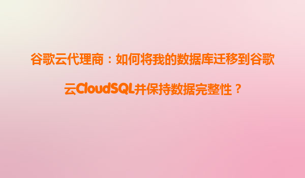谷歌云代理商:如何将我的数据库迁移到谷歌云CloudSQL并保持数据完整性?