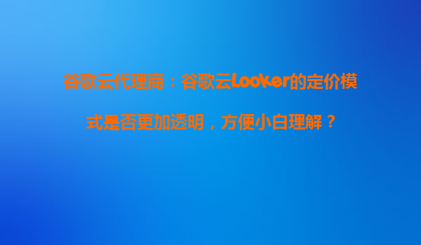 谷歌云代理商解析:谷歌云Looker的定价模式是否更加透明,方便小白理解?