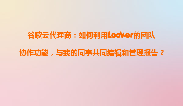 2025-10-31谷歌云代理商指南:如何利用Looker的团队协作功能实现高效报告管理 一、Looker团队协作的核心功能 作为谷歌云生态中的核心商业智能工具,Looker提供了完善的团队协作机制,帮助企业与谷...