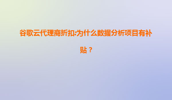 为什么数据分析项目在谷歌云代理商处享有补贴? 在数字化转型的浪潮中,数据分析已成为企业决策的核心工具。谷歌云作为全球领先的云计算服务提供商,通过代理商为数据分析项目提供补贴,目的是降低企业上云门槛,加...