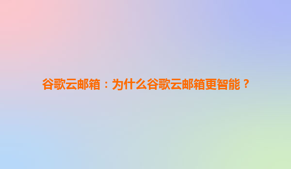 2025-07-25谷歌云邮箱:为什么谷歌云邮箱更智能? 引言 在数字化办公时代,电子邮箱依然是企业和个人沟通的核心工具之一。谷歌云邮箱(GoogleWorkspace邮箱,原GSuite)凭借其智能化功能、强大的云端整合能力和...
