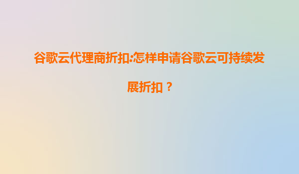2025-07-25谷歌云代理商折扣:如何申请谷歌云可持续发展折扣? 一、谷歌云可持续发展折扣的背景与优势 谷歌云(GoogleCloud)作为全球领先的云服务提供商,始终致力于通过技术创新推动可持续发展。为...