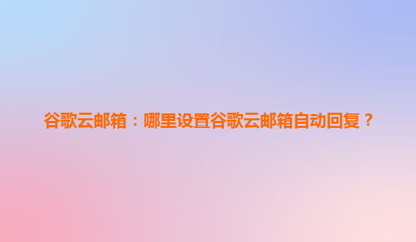 2025-07-23谷歌云邮箱自动回复设置指南:高效协同与智能管理 一、为什么选择谷歌云邮箱的自动回复功能? 谷歌云邮箱(GmailforWorkspace)作为企业级邮件解决方案,其自动回复功能不仅能提升工作效率,还完美体现了谷歌云的...