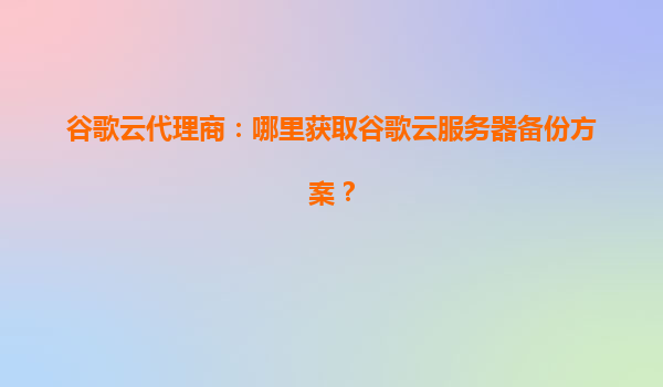 谷歌云代理商:获取专业备份方案的首选合作伙伴 作为全球领先的云计算服务提供商,谷歌云(GoogleCloud)凭借其强大的基础设施和创新技术,为企业提供了安全可靠的云服务器备份解决方案。通过谷歌云官方代理商...