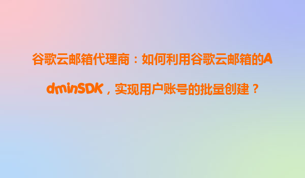 2025-10-30谷歌云邮箱代理商:如何利用谷歌云邮箱的AdminSDK实现用户账号的批量创建 一、谷歌云邮箱的优势 谷歌云(GoogleWorkspace)作为全球领先的云服务提供商,其企业邮箱解决方案——谷歌云邮箱(Gmailfo...