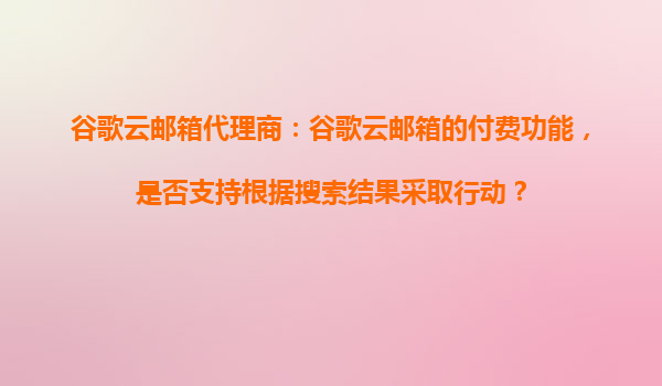2025-10-30谷歌云邮箱代理商深度解析:付费功能与搜索结果联动机制 一、谷歌云邮箱代理商的核心价值 谷歌云邮箱(GoogleWorkspace)作为企业级邮箱解决方案,通过全球代理商网络为企业提供本地化支持。代理...