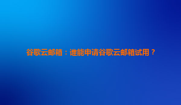 2025-07-22谷歌云邮箱:谁能申请谷歌云邮箱试用? 一、谷歌云邮箱简介 谷歌云邮箱(GoogleWorkspace,原GSuite)是全球领先的企业级邮件和协作工具,提供包括Gmail企业邮箱、GoogleDrive、Meet、...