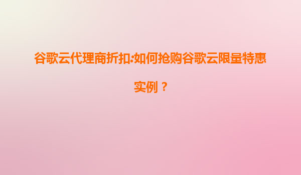 2025-07-22谷歌云代理商折扣:如何抢购谷歌云限量特惠实例 在当今数字化时代,云计算已成为企业提升效率、降低成本的重要工具。作为全球领先的云服务提供商之一,谷歌云凭借其卓越的性能、强大的功能和灵活的定价策略,吸引...