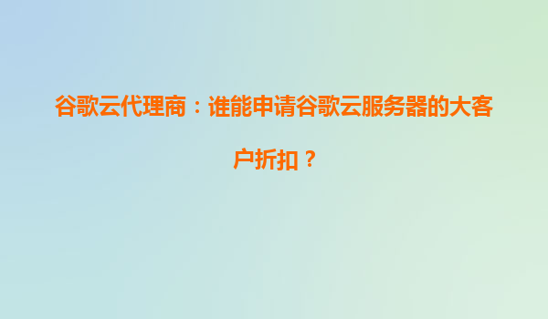 谷歌云代理商:谁能申请谷歌云服务器的大客户折扣? 一、什么是谷歌云大客户折扣? 谷歌云(GoogleCloud)作为全球领先的云计算服务提供商,为大客户提供专属...