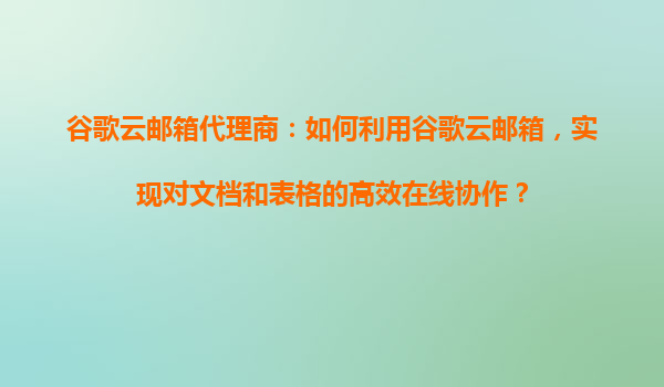 2025-10-30谷歌云邮箱代理商:如何利用谷歌云邮箱,实现对文档和表格的高效在线协作? 一、谷歌云邮箱的核心协作优势 谷歌云邮箱(Gmail)与谷歌Workspace深度整合,提供了基于云端的高效协作解决方案: ...