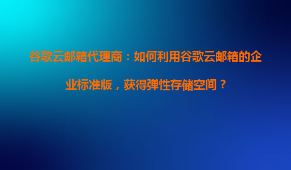 2025-10-30谷歌云邮箱代理商:如何利用谷歌云邮箱企业标准版获得弹性存储空间 一、谷歌云邮箱企业标准版的核心优势 谷歌云邮箱(GoogleWorkspace)企业标准版是为中大型...