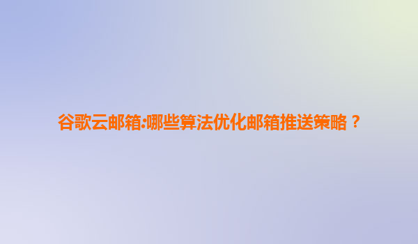 2025-07-19谷歌云邮箱:哪些算法优化邮箱推送策略? 引言 在数字化时代,电子邮件仍然是企业和个人沟通的重要渠道之一。为了提升用户体验和确保重要邮件能够高效送达,谷歌云邮箱(GoogleWorkspace)通过多种算法优...
