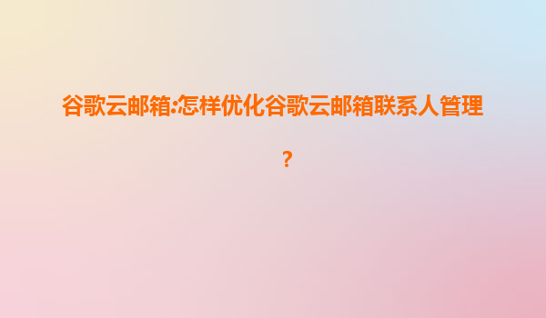 2025-07-19谷歌云邮箱:怎样优化谷歌云邮箱联系人管理? 谷歌云邮箱(Gmail)作为全球领先的电子邮件服务之一,凭借其强大的功能和稳定的性能赢得了数亿用户的青睐。然而,在日常使用中,联系人管理是一个容易被忽视却又...