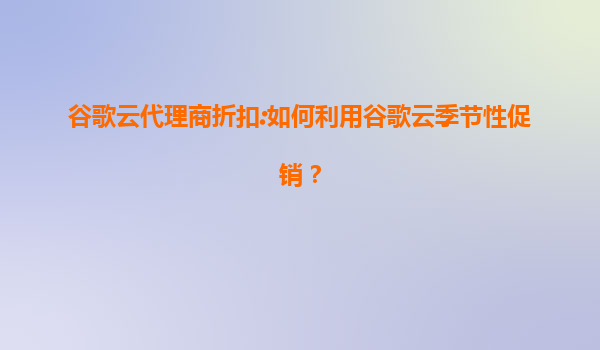 谷歌云代理商折扣:如何利用谷歌云季节性促销? 一、谷歌云季节性促销:为什么值得关注? 谷歌云(GoogleCloud)作为全球领先的云计算服务提供商,每年都会推出季节性促销活动,例如“黑五优惠”“新年特惠...