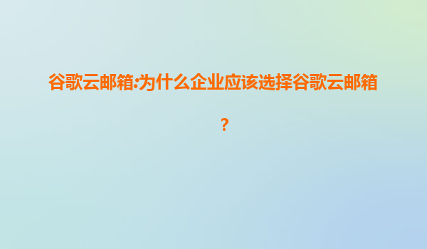 为什么企业应该选择谷歌云邮箱? 在当今数字化时代,电子邮箱已成为企业日常运营不可或缺的工具。选择一款高效、安全且功能强大的企业邮箱解决方案至关重要。谷歌云邮箱(GoogleWorkspace中的Gmail)凭借其卓...