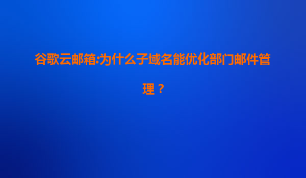 2025-07-19谷歌云邮箱:如何通过子域名优化部门邮件管理 引言 在现代企业中,高效的邮件管理对协作与沟通至关重要。谷歌云邮箱(GoogleWorkspace)通过子域名功能,为企业提供了灵活且可扩展的邮件管...