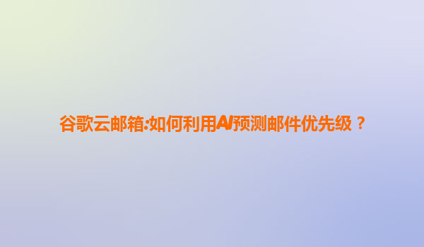 2025-07-19谷歌云邮箱:如何利用AI预测邮件优先级? 引言 在现代快节奏的工作环境中,电子邮件的处理效率直接影响到个人和团队的生产力。每天接收大量邮件时,如何快速识别高优先级邮件成为关键挑战。谷歌云邮箱(Gmail)通过...
