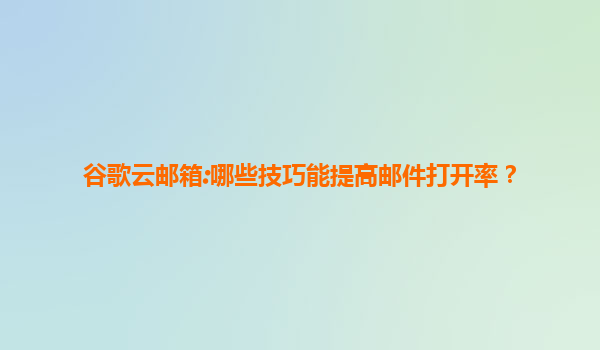 2025-07-19如何利用谷歌云邮箱提升邮件打开率?实用技巧全解析 1.优化邮件主题:吸引眼球的“第一印象” 邮件的主题是决定打开率的关键因素之一。使用简短、明确且能激发好奇心的主题行,可以有效提高收件人的...