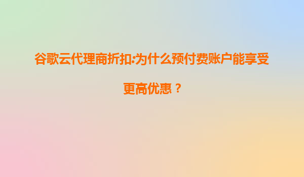 2025-07-19谷歌云代理商折扣:为什么预付费账户能享受更高优惠? 一、引言 在云计算市场竞争日益激烈的背景下,谷歌云(GoogleCloudPlatform,GCP)凭借其高性能、高可靠性和丰富的服务能力,吸引了越来越...