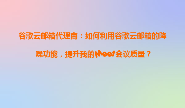 2025-10-29谷歌云邮箱代理商:如何利用谷歌云邮箱的降噪功能,提升我的Meet会议质量? 引言 在当今远程工作和在线学习日益普及的环境中,GoogleMeet作为一款高效的视频会议工具,已经成为企业、教育机构和个人用户的...
