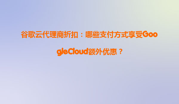 2025-07-19谷歌云代理商折扣:哪些支付方式享受GoogleCloud额外优惠? 谷歌云的核心优势 谷歌云(GoogleCloudPlatform,GCP)作为全球领先的云计算服务提供商,凭借其强大的技术实力和生态体系...