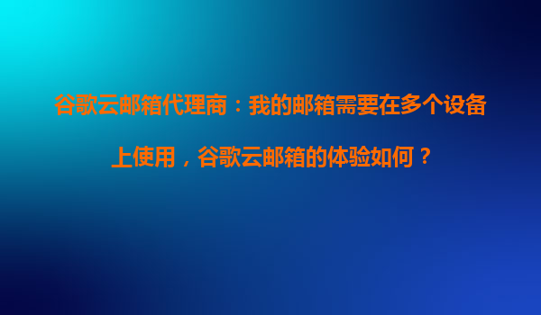 谷歌云邮箱代理商:多设备协同使用的卓越体验 一、标题解析:用户需求与技术场景 该标题包含三个核心要素:“谷歌云邮箱代理商”(服务来源)、“多设备使用”(使用场景)和“体验如何”(功能评...