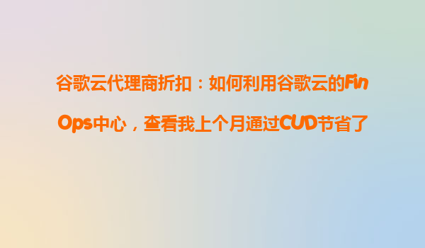 2025-10-28谷歌云代理商折扣:如何利用谷歌云的FinOps中心,查看上个月通过CUD节省的费用 引言 在全球数字化转型的浪潮中,云计算已成为企业降低成本、提高灵活性的关键工具。谷歌云作为全球领先的云计算服务提供...