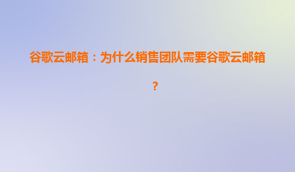 2025-07-19谷歌云邮箱:为什么销售团队需要谷歌云邮箱? 引言 在当今数字化商业环境中,销售团队的高效沟通与协作是企业成功的关键因素之一。谷歌云邮箱(GmailforBusiness)作为谷歌云(GoogleCloud)的核心服务...