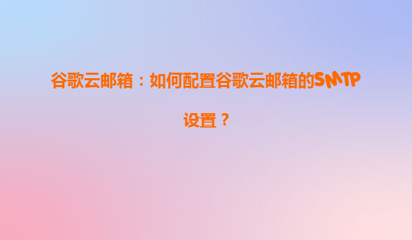谷歌云邮箱:如何配置谷歌云邮箱的SMTP设置? 在当今数字化时代,电子邮件已成为企业沟通的重要工具。谷歌云邮箱(GoogleWorkspace)以其强大的功能和可靠性,成为众多企业的首选。本文将详细介绍如何配置谷歌...