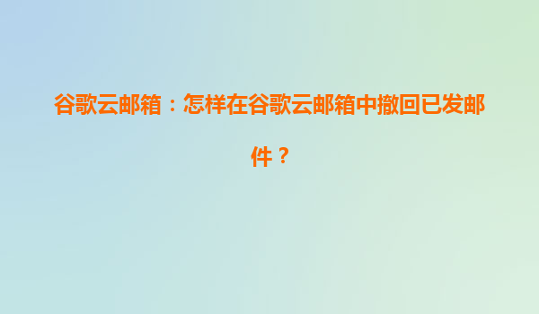 2025-07-19谷歌云邮箱:怎样在谷歌云邮箱中撤回已发邮件? 在日常工作中,电子邮件是我们沟通的重要工具之一。然而有时由于疏忽或错误操作,可能会发送不完整或错误的邮件。若您使用的是谷歌云邮箱(Gmail)...