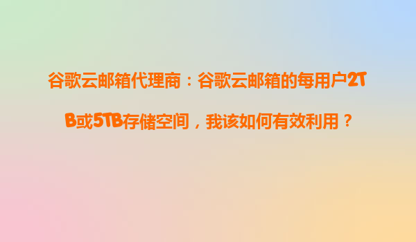 2025-10-28谷歌云邮箱代理商:谷歌云邮箱的每用户2TB或5TB存储空间,如何有效利用? 一、谷歌云邮箱的核心优势 谷歌云邮箱(GoogleWorkspace)作为企业级邮箱服务,凭借其强大的存储能力和协同功...