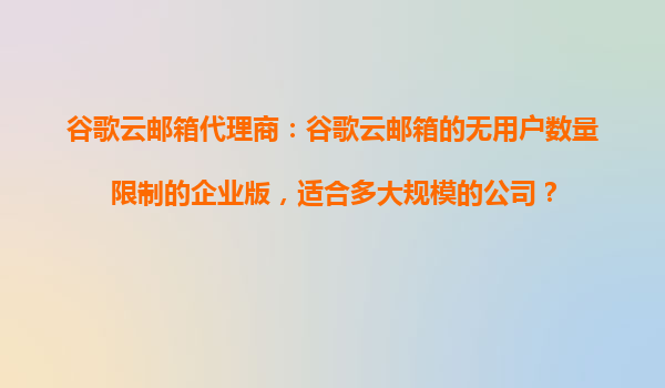 2025-10-28谷歌云邮箱代理商:谷歌云邮箱无用户数量限制的企业版,适合多大规模的公司? 引言 随着企业数字化转型的加速,电子邮件已成为现代企业不可或缺的沟通工具。谷歌云邮箱(GoogleWork...