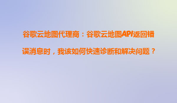 2025-10-28谷歌云地图代理商指南:快速诊断API错误及解决方案 谷歌云地图API的优势 谷歌云地图(GoogleMapsPlatform)作为全球领先的地图服务提供商,其API为开发者提供了强大的地理空间数据支持...