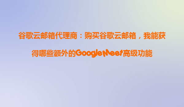 2025-10-27谷歌云邮箱代理商:购买谷歌云邮箱,我能获得哪些额外的GoogleMeet高级功能? 一、谷歌云邮箱与GoogleMeet的深度整合优势 通过谷歌云邮箱代理商购买谷歌云邮箱(GoogleWorkspace企业版),用户不仅获得...