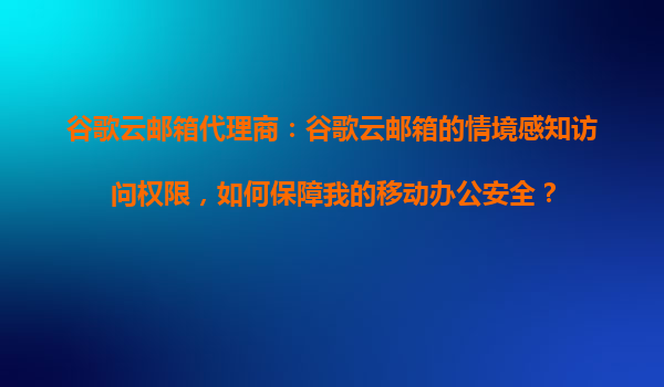2025-10-27谷歌云邮箱代理商:如何利用情境感知访问权限保障移动办公安全? 一、移动办公的安全挑战 随着远程办公和移动设备的普及,企业数据面临钓鱼攻击、设备丢失、未...
