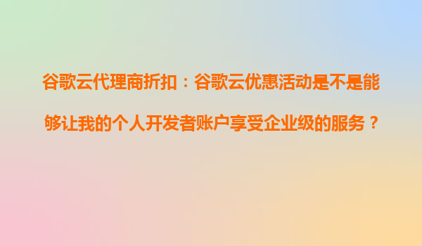 2025-10-26谷歌云代理商折扣:个人开发者如何通过优惠活动享受企业级服务? 一、谷歌云的核心优势 谷歌云(GoogleCloudPlatform,GCP)作为全球领先的云计算服务提供商,凭借其技术实力和生态优...