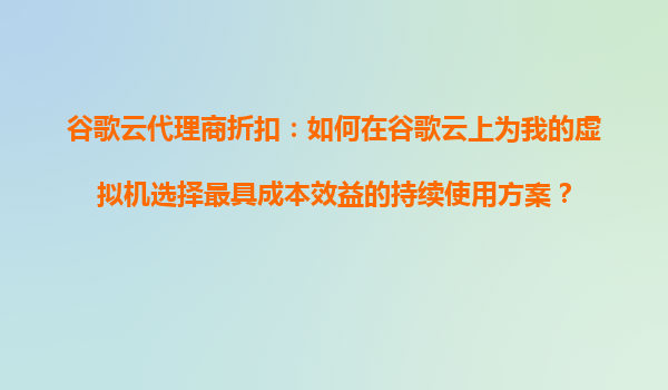 2025-10-25谷歌云代理商折扣:如何在谷歌云上为我的虚拟机选择最具成本效益的持续使用方案? 引言 在云计算领域,谷歌云(GoogleCloudPlatform,GCP)凭借其强大的基础...