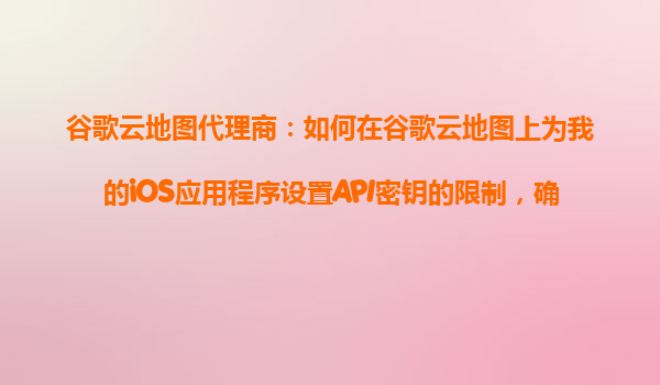 2025-10-24谷歌云地图代理商:如何在谷歌云地图上为iOS应用程序设置API密钥限制,确保资讯安全 前言 在移动应用开发中,谷歌云地图(GoogleMapsPlatform)因其强大的功能和全球覆盖的地图数据,成为许多开发者的首...