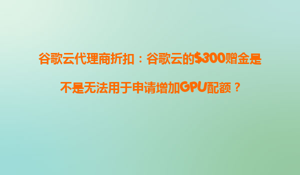 2025-10-24谷歌云代理商折扣:谷歌云的$300赠金是否可用于申请增加GPU配额? 前言 随着云计算技术的快速发展,越来越多的企业和开发者选择使用谷歌云(GoogleCloudPlatform,简称GCP)来部署和管理他们的业务。...