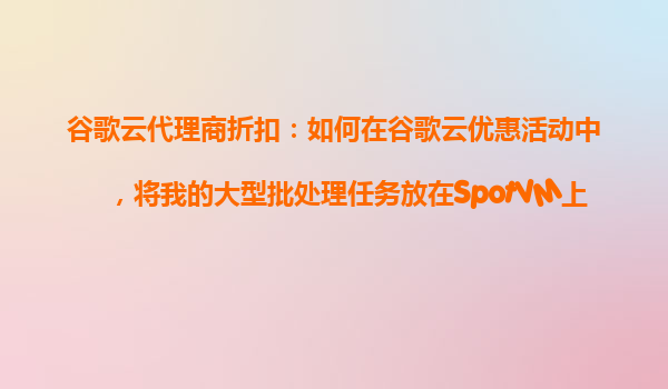 2025-10-24谷歌云代理商折扣:利用SpotVM降低大型批处理任务成本指南 一、谷歌云与SpotVM的核心优势 谷歌云(GoogleCloudPlatform,GCP)提供弹性计算资源,其Spot虚拟机(SpotVMs)是短期任务的理想选择,价...
