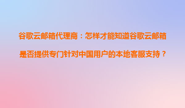 2025-10-24谷歌云邮箱代理商指南:如何确认是否提供中国用户本地客服支持? 一、谷歌云邮箱的核心优势 谷歌云邮箱(GoogleWorkspace)作为全球领先的企业级邮箱服务,凭借以下优势...