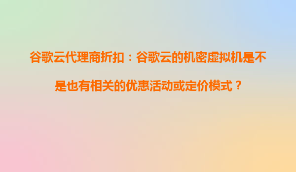 2025-10-24谷歌云代理商折扣:谷歌云机密虚拟机优惠活动与定价模式解析 一、谷歌云代理商折扣的核心优势 谷歌云作为全球领先的云计算服务提供商,其代理商体系为客户提供了灵活的采购渠道和更具竞争力的价格方案...