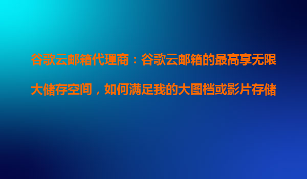 2025-10-24谷歌云邮箱代理商:谷歌云邮箱的最高享无限大储存空间,如何满足我的大图档或影片存储? 在数字化时代,大容量图档和影片的存储需求日益增长。无论是个人用户还是企业用户,都需要一个安全、稳定且容量充足的云端...