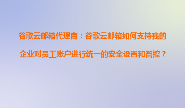 2025-10-23谷歌云邮箱代理商:谷歌云邮箱如何支持企业对员工账户进行统一安全设置与管控 一、企业邮箱管理的核心挑战 在数字化办公场景中,企业邮箱不仅是沟通工具,更是数据安全的要塞。分散的账户管理...