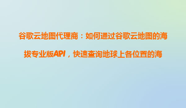 如何通过谷歌云地图的海拔专业版API快速查询地球上各位置的海拔数据 引言 在当今数字化时代,地理信息系统(GIS)和位置服务已成为许多行业不可或缺的一部分。无论是城市规划、物流运输、户外探险...