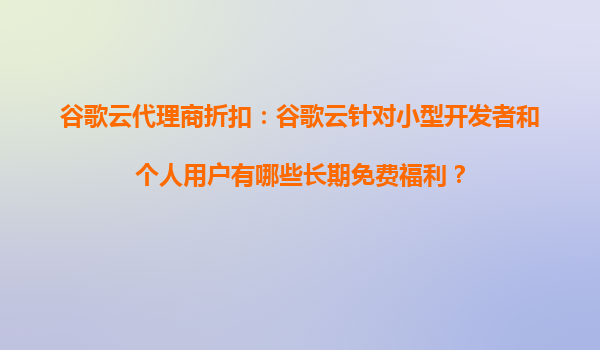2025-10-22谷歌云代理商折扣:谷歌云针对小型开发者和个人用户的长期免费福利解析 一、谷歌云长期免费福利概览 谷歌云(GoogleCloudPlatform,GCP)为降低开发门槛,吸引更多小型开发者和个人用...